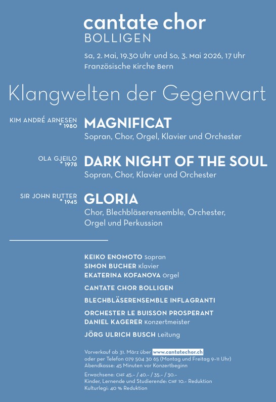 Weiteres Konzert: 2. Mai um 18.15 Uhr in der Deutschen Kirche Murten
